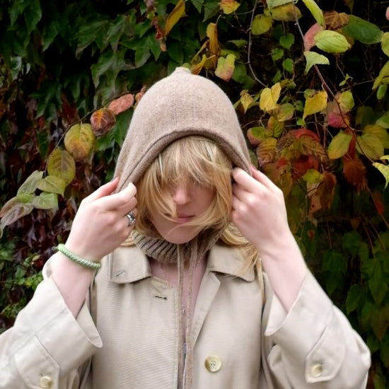 Cashmere Knitted Hood - Balaclava in Tan