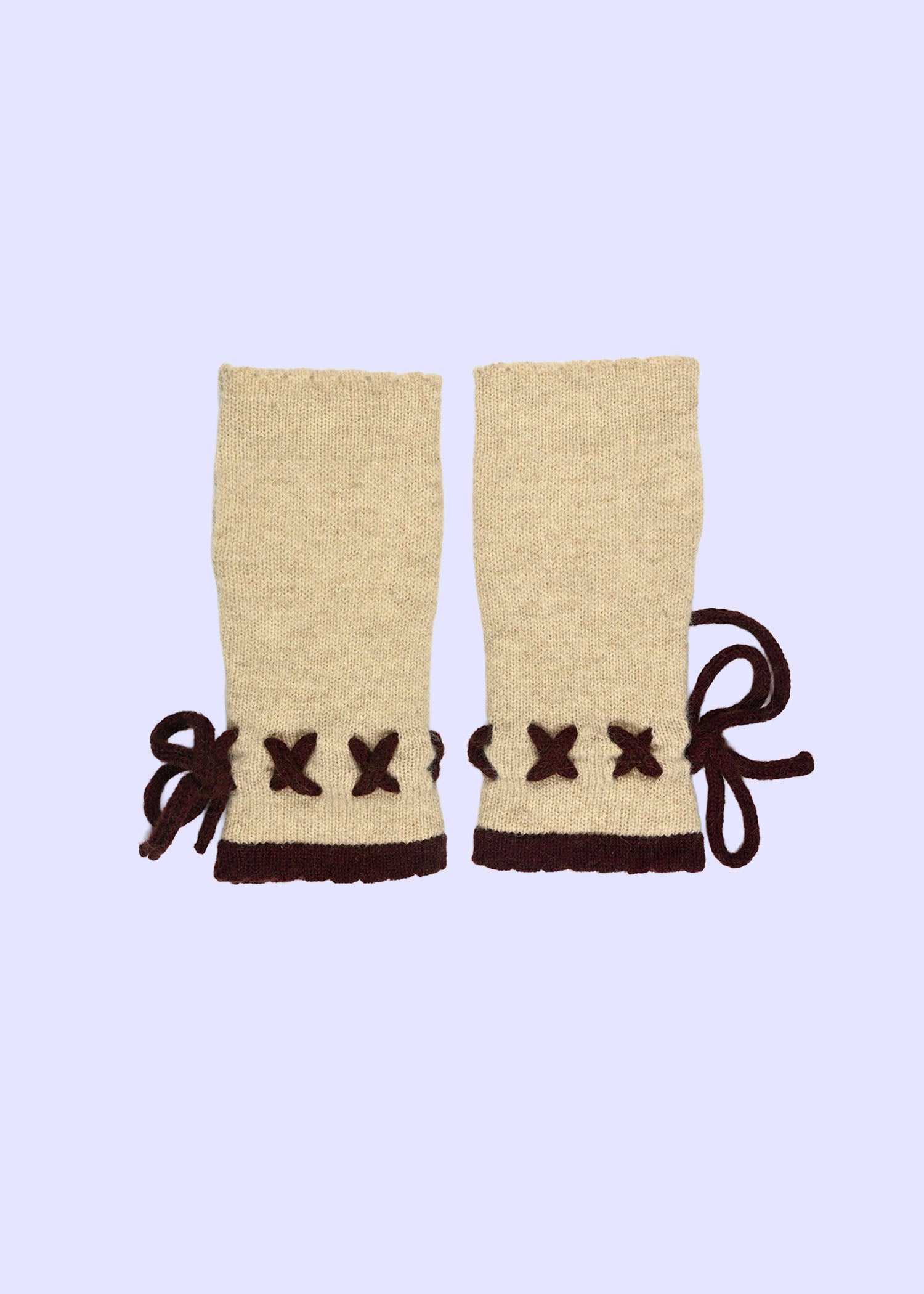 Cashmere Knitted Wrist Warmers - Fingerless Gloves in Burgundy and Cream